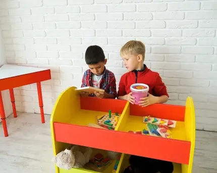 - стеллажами, шкафами, полками для книг, методическими пособиями, дидактическими материалами, игрушками, обучающими материалами;