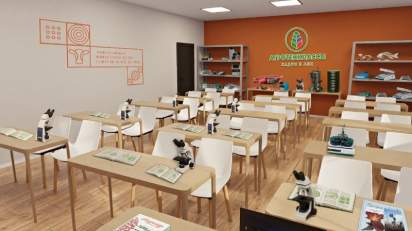 Центр управления знаниями и визуализации данных. Интерактивная панель и комплект электронных образовательных ресурсов «Эффективное животноводство» служат для теоретической подготовки, моделирования процессов, проведения интерактивных занятий и отображения результатов исследований, проведенных в других зонах класса.