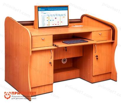 Антивандальный стол-сейф «Базис» – это надежное и практичное решение для учебных заведений, обеспечивающее безопасное хранение учебных материалов и техники. Он сочетает в себе прочный корпус из ЛДСП, антивандальный сенсорный экран с автоматическим подъемным механизмом и встроенную акустическую систему. Стол оборудован двумя шкафчиками с врезным замком и полочкой для клавиатуры, что позволяет хранить документы и технику в одном месте.
