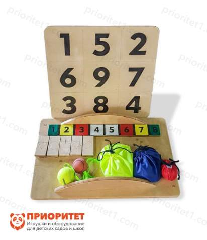 - Функционал набора многообразен. Можно устанавливать мешочки на балансире. Считать цифры на пластинках. Изучать геометрические фигуры и цвета предметов. Разделить инструменты по весу или размеру. Указывать на те, что попросит педагог и пр.