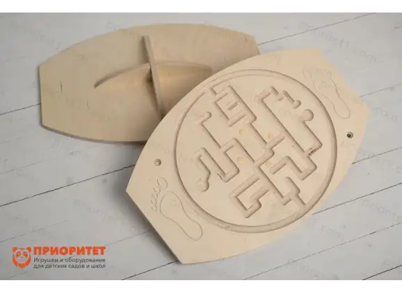 Тренажер для формирования координационных навыков основан на простом принципе. Округлое основание заставляет ребенка удерживать равновесие. Занятия на доске обеспечивают детям от 3 до 7 лет развитие не только силы и ловкости, но и умственной деятельности. В процессе занятий на тренажере активизируются когнитивные процессы. Ребенок сосредотачивается на решении задачи. Нанесенный выпуклый лабиринт служит для повышения мотивации в нахождении решения в сложной ситуации. Тренажер направлен на создание условий для успешной реализации ФГОС ДО.