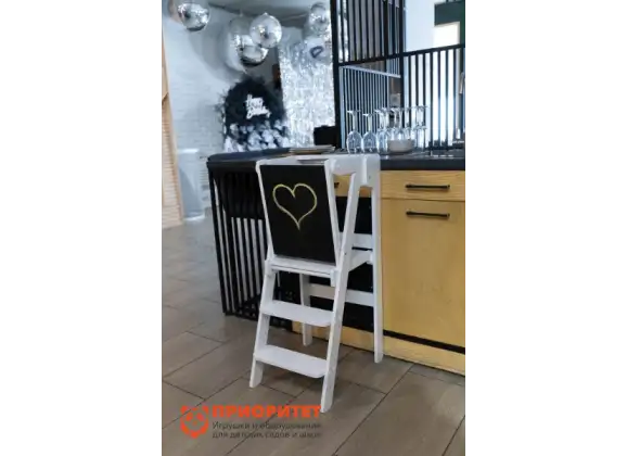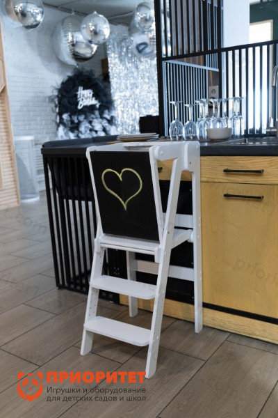 Позвольте малышу с радостью участвовать в жизни семьи! Башня помощника в стиле Монтессори — это безопасная подставка, которая помогает ребёнку дотянуться до раковины, кухонной столешницы или стола для творчества. Модель дополнена функциональной меловой доской, на которой можно рисовать, писать или играть — каждый день превращается в игру!