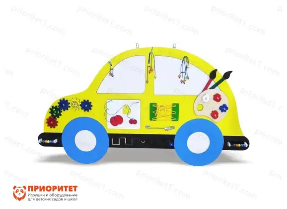 Большой автомобиль с множеством занимательных элементов станет необычным украшением любого дома или дошкольного учреждения. Он привлечет внимание малышей и подарит им массу положительных впечатлений, ведь с яркими деталями можно тактильно взаимодействовать, что является любимым способом познания окружающего мира у каждого ребенка. Малыш поймет принцип работы шестерней, научится завязывать узлы и пользоваться магнитами.