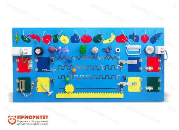 - Косвенно работает логика, когда малыш сам догадывается о назначении предмета. А также знание цветовой палитры, ведь на бизиборде множество цветных деталей.