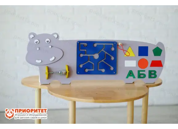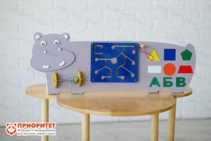 Бизиборд в тематике жизни диких животных будет интересен многим детям. Дикий мир таит в себе множество тайн и загадок природы. Детям стоит внимательнее рассмотреть каждую деталь «бегемотика». Бизипанель выглядит ярко и стильно. Она привлекает внимание малышей и взрослых, делает уроки интереснее и позитивнее. Бизидоска богата разнообразием полезных элементов. Дети с легкостью придумают увлекательные сюжеты для игр.