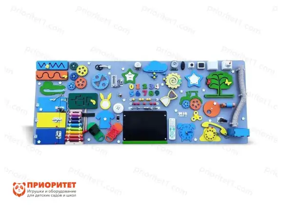 Бизиборд «Мир знаний» – это игровая панель, предназначенная для развития логики и полезных навыков у детей. Представляет собой крупную панель с разными головоломками. Дети решают простые игры, трогают подвижные детали и развивают полезные навыки, которые пригодятся в будущем.