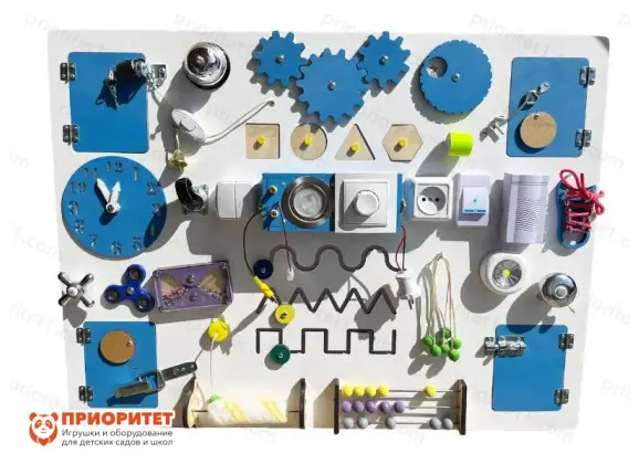 Бизиборд Основные Механизмы состоит из различных элементов, которые нужно перемещать, вращать и соединять между собой. Ребенок может самостоятельно создавать новые конструкции и экспериментировать с ними. Таким образом, он сможет изучать основы электроники и механики, работы замков, шнуровок, развивая самостоятельность, открывая новые и увлекательные миры.