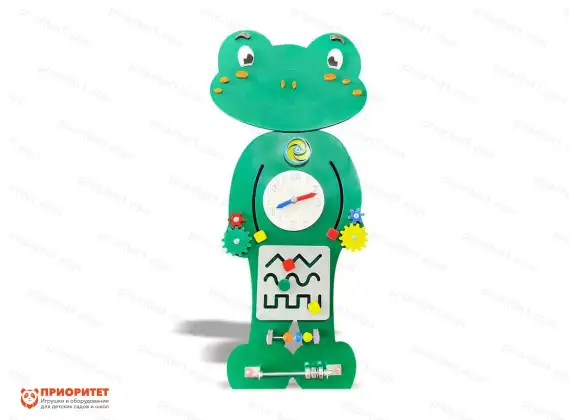 Яркий интерактивный бизиборд «Озорная лягушка» станет любимым уголком в детской или игровой комнате. Он сочетает в себе несколько блоков с красочными вращающимися элементами, которые развивают у ребенка различные навыки.