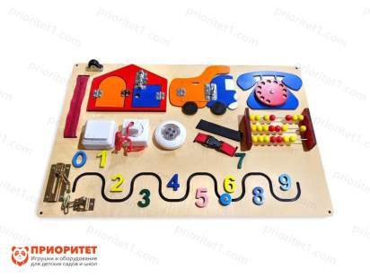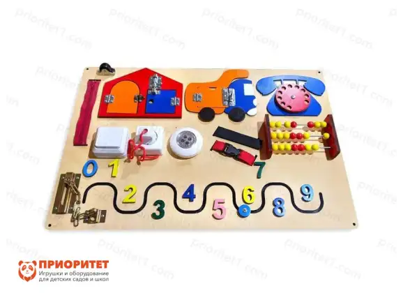 Панель «Счетные навыки» - эту уникальная развивающая панель, с помощью которой ваш малыш быстро выучит простые числа – от 0 до 9. Вы можете давать ему различные задания на счет, чтобы в последствии ребенок легко ориентировался в сложной теме. Также, с этой панелью ребенок сможет развить такие навыки, как мелкая моторика, сообразительность, логическое мышление, внимательность и координацию движений, так как панель дает возможность открывать двери, щелкать выключателем, пользоваться розеткой, двигать счеты, пользоваться молнией и различными замками.