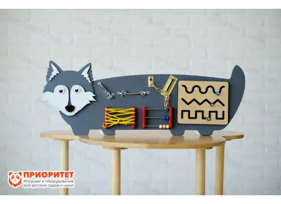 Бизиборд в тематике жизни диких животных будет интересен многим детям. Дикий мир таит в себе множество тайн и загадок природы. Детям стоит внимательнее рассмотреть каждую деталь «волка». Бизипанель выглядит ярко и стильно. Она привлекает внимание малышей и взрослых, делает уроки интереснее и позитивнее. Бизидоска богата разнообразием полезных элементов. Дети с легкостью придумают увлекательные сюжеты для игр.
