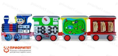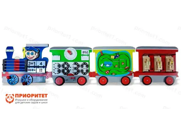 - Вагон-полянка представляет собой лабиринт, который развивает мелкую моторику и координацию движений рук.