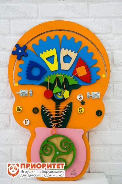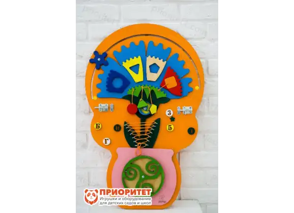Бизиборд создан в виде красочного полевого цветка. «Василек» напоминает собой простор полей, свежесть чистого воздуха и легкий цветочный аромат. Детям стоит внимательнее рассмотреть каждую деталь панели. Бизиборд наполнен множеством полезных элементов. Детям будет приятно и увлекательно играть с таким «летним» бизибордом.