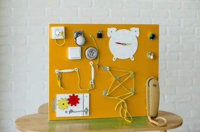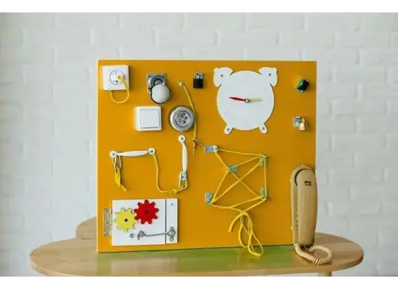 Многофункциональный бизиборд станет практичным подарком по любому поводу. Он поможет малышу стать самостоятельнее, а также удовлетворит его любопытство, ведь малыши дошкольного возраста любят познавать окружающий мир с помощью своих ручек. Безопасные элементы подобраны с учетом возрастных особенностей ребенка – они не имеют острых граней или токсичных веществ в составе. Универсальная конструкция позволяет разместить бизиборд на стене или использовать его на любой горизонтальной поверхности.