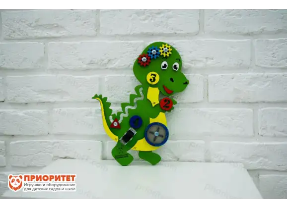 Бизиборд с изображением милого динозаврика вызовет массу приятных эмоций. Ребенку захочется поделиться своим восторгом с взрослым и сверстниками – этому не надо препятствовать. Наиболее подходящий возраст: от одного года до семи лет. Данный период является наиболее сенситивным для становления и развития личности.