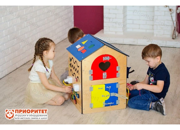 Бизидом сформирован из нескольких панелей. На каждой панели размещены специальные игровые элементы. Занятия с бизидомом способствуют не только физическому и умственному развитию, но и учат детей самостоятельно разбираться с домашними делами. На панели расположены элементы, часто привлекающие детское внимание. Главный плюс – эффективное развитие и безопасное удовлетворение детского любопытства. Бизидом предназначен для проведения развивающих игр в дошкольных образовательных учреждениях, коррекционных центрах и т.д.