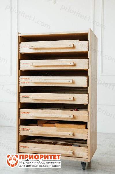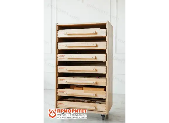 - Продуманная система хранения позволяет быстро найти нужный материал. Тумбу легко переместить в другое место, так как у нее есть колеса.