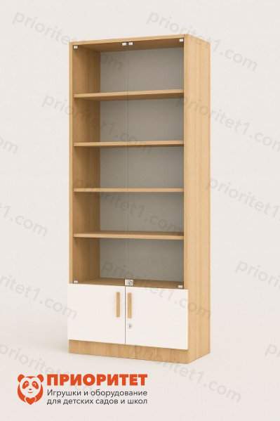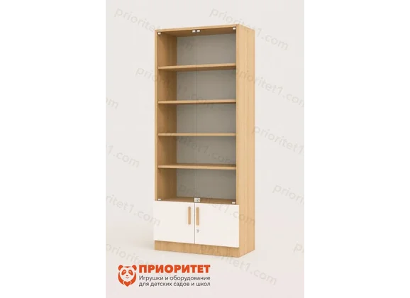 - пять открытых полок под стеклянными дверцами — идеальны для экспозиции литературы, макетов, экспонатов или методических материалов;