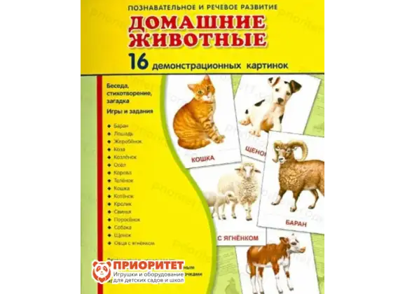 Демонстрационные карточки «Домашние животные» (173х220 мм) – это уникальное наглядное пособие для детей, которое позволяет малышам познакомится с миром животных. Набор может быть использован дома, в детских садах, а также в иных развивающих дошкольных центрах. Набор содержит 16 демонстрационных картинок с играми и заданиями, которые активизируют познавательную активность детей, а также тренируют речевые и коммуникативные навыки.