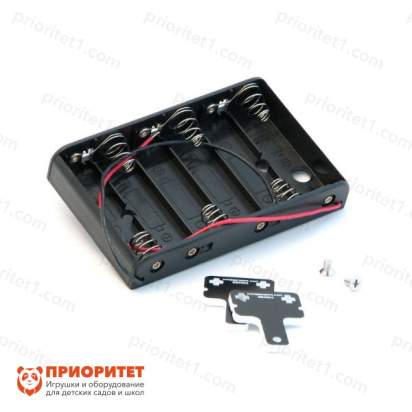 - Держатель для батарей используется как дополнительное устройство для робота, требующего много батарей для работы. Представляет собой коробочку, которая присоединяется к роботу при помощи двух проводов.