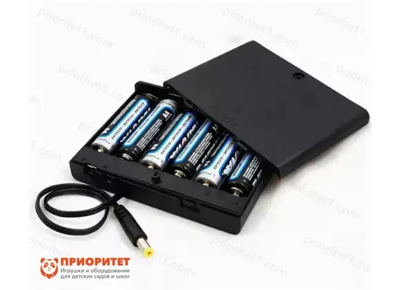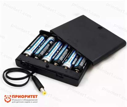 Небольшая черная коробочка, выполненная из пластика, обладает габаритами 100/20/100 мм и удобно лежит в руке при конструировании механизмов или электрических приборов. К держателю присоединен кабель, с помощью которого собранный аккумулятор присоединяется к прибору Lego. Внутрь держателя можно поместить 6 батареек типа АА. Оборудование выполнено в соответствии с Федеральным государственным образовательным стандартом, поэтому его можно использовать для дополнительного образования в школе или кружках.
