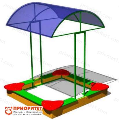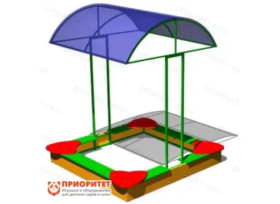 Над основанием песочницы имеется навес. Он защищает поверхность песка и бортиков от попадания на них осадков. Ребенок может укрыться внутри песочницы от дождя и снега. Крыша выдерживает вес больших объемов осадков, не пропускает влагу и может поддаваться ремонту. В песочницу помещается песок, и дети играют с ним в любое время, предмет может находиться на улице круглый год.