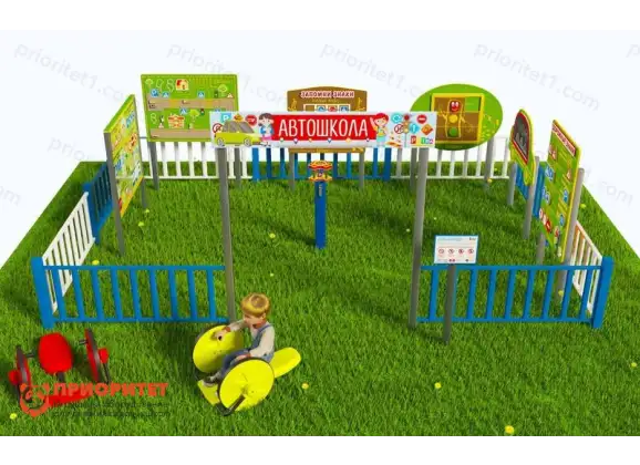Детская профориентационная игровая площадка «АВТОШКОЛА (Эконом-2)» — компактный улично-игровой комплекс для детских садов, школ и центров дополнительного образования, который увлекательно знакомит детей с правилами дорожного движения и транспортной тематикой.