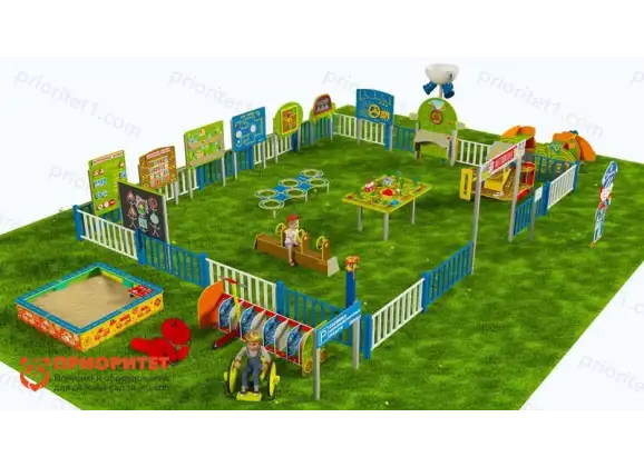- Профессиональная инфраструктура: парковка для детского транспорта, песочница с элементами ПДД и гоночный автомобиль