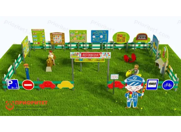 Детская профориентационная площадка «АВТОШКОЛА (Максимальная-3)» — это концептуально завершенный автогородок с тематическим оформлением премиум-класса. Уникальное сочетание декоративного забора «Машинки» и функционального ограждения «Знаки дорожного движения» создает среду для глубокого изучения правил дорожного движения. Комплекс трансформирует стандартное обучение ПДД в увлекательный игровой процесс с полным визуальным и тактильным вовлечением.