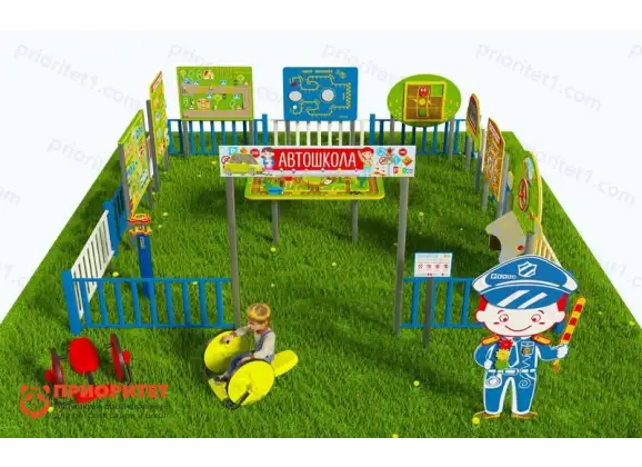 Детская профориентационная игровая площадка «АВТОШКОЛА (Стандарт-2)» — это усовершенствованная версия обучающего комплекса с полноценным зонированием территории. Данная модель включает всё необходимое для создания безопасной и функциональной образовательной среды: от защитного ограждения до профессионального оборудования для изучения ПДД.