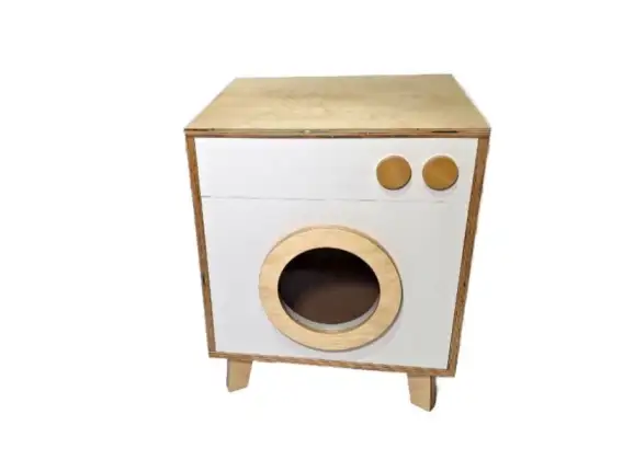 - Круглая дверка с «окошком», как у настоящей стиральной машины;