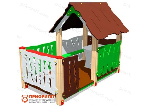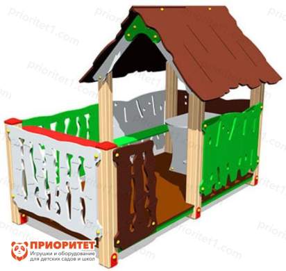 - Выполнен в виде дома с палисадником, который формируется с помощью заборчика. Внутри находится столик.