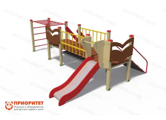 Игровой комплекс выполнен в тематике современного города. Такая игровая зона быстро станет любимым местом среди детворы. Здесь дети смогут свободно бегать, играть, кататься, общаться и веселиться. Комплекс можно назначить местом встреч для друзей. Конструкция оснащена горкой с бортиками и перекладинами. Дополнительно имеется пространство для передвижения. Комплекс можно установить на придворных детских площадках, игровых зонах учебных заведений либо в частном секторе.