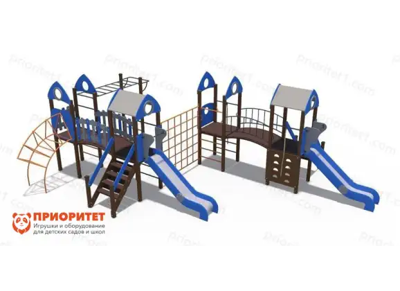 Такой игровой комплекс «Космический» понравится всем без исключения! Он способствует развитию и укреплению здоровья, мышечного тонуса, координации движений и др. Удобные лестницы, перекладины сделают конструкцию надежной, и дети без труда смогут забираться наверх без дополнительной помощи.