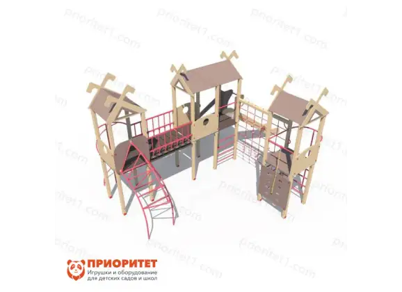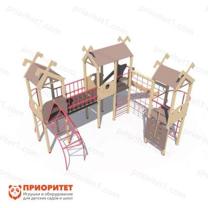 Детский игровой комплекс «Лесные игры» оснащен горкой с бортиками, лестницами, скалодромом, шведской стенкой. Домики соединены интересными переходами. Все конструкции сделаны таким образом, что ребенку будет интересно и безопасно взбираться наверх при помощи рук и ног. Такие упражнения способствуют развитию всех групп мышц, оказывают благотворное влияние на весь организм в целом.
