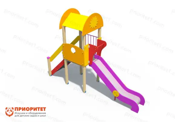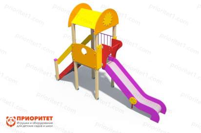 Игровой комплекс выполнен в тематике солнечного лета. Такая игровая зона быстро станет любимым местом среди детворы. Здесь дети смогут свободно бегать, играть, кататься, общаться и веселиться. Комплекс можно назначить местом встреч для друзей. Конструкция оснащена горкой с бортиками. Дополнительно имеется пространство для передвижения. Комплекс можно установить на придворных детских площадках, игровых зонах учебных заведений либо в частном секторе.