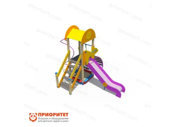 Игровой комплекс выполнен в тематике солнечного лета. Такая игровая зона быстро станет любимым местом среди детворы. Здесь дети смогут свободно бегать, играть, кататься, общаться и веселиться. Комплекс можно назначить местом встреч для друзей. Конструкция оснащена горкой с бортиками, песочницей и скалодромом. Дополнительно имеется пространство для передвижения. Комплекс можно установить на придворных детских площадках, игровых зонах учебных заведений либо в частном секторе.