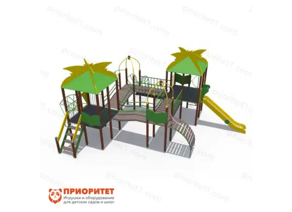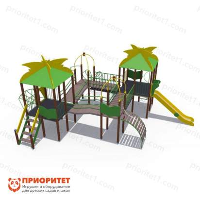 - Комплекс подходит для учебных учреждений и уличных площадок. Рассчитан на большую группу детей. Установка – на улице.