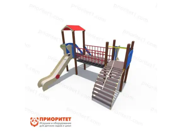 Игровой комплекс выполнен в спортивной тематике. Такая игровая зона быстро станет любимым местом среди детворы. Здесь дети смогут свободно бегать, играть, кататься, общаться и веселиться. Комплекс можно назначить местом встреч для друзей. Конструкция оснащена горкой с бортиками и скалодромом. Дополнительно имеется пространство для передвижения. Комплекс можно установить на придворных детских площадках, игровых зонах учебных заведений либо в частном секторе.