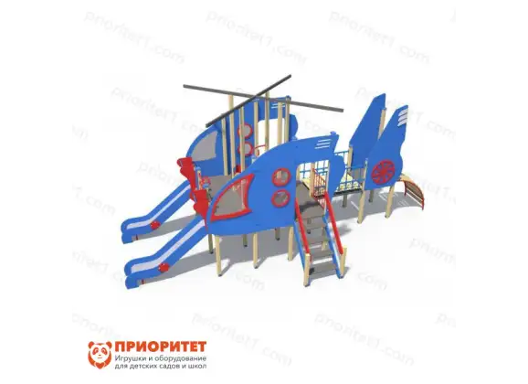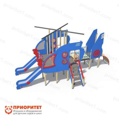 Игровой комплекс выполнен в виде воздушного судна. Такая игровая зона быстро станет любимым местом среди детворы. Здесь дети смогут свободно бегать, играть, кататься, общаться и веселиться. Комплекс можно назначить местом встреч для друзей. Конструкция оснащена горками с бортиками и скалодромом. Дополнительно имеется пространство для передвижения. Комплекс можно установить на придворных детских площадках, игровых зонах учебных заведений либо в частном секторе.