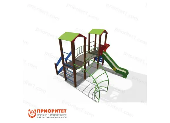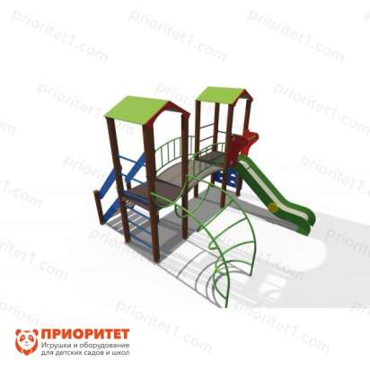 Игровой комплекс выполнен в виде лесной опушки. Такая игровая зона быстро станет любимым местом среди детворы. Здесь дети смогут свободно бегать, играть, кататься, общаться и веселиться. Комплекс можно назначить местом встреч для друзей. Конструкция оснащена горкой с бортиками и турниками. Дополнительно имеется пространство для передвижения. Комплекс можно установить на придворных детских площадках, игровых зонах учебных заведений либо в частном секторе.