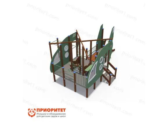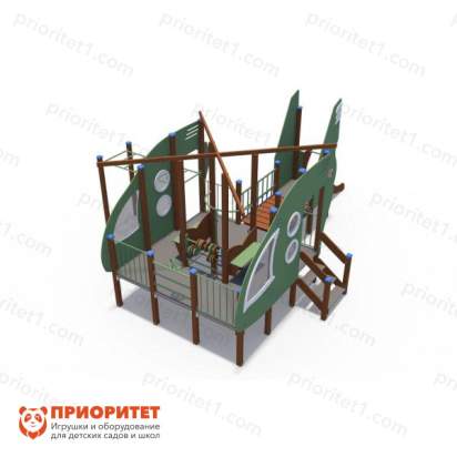 Игровой комплекс выполнен в виде воздушного судна. Такая игровая зона быстро станет любимым местом среди детворы. Здесь дети смогут свободно бегать, играть, кататься, общаться и веселиться. Комплекс можно назначить местом встреч для друзей. Конструкция оснащена горками с бортиками и турниками. Дополнительно имеется пространство для передвижения. Комплекс можно установить на придворных детских площадках, игровых зонах учебных заведений либо в частном секторе.