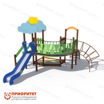 Игровой комплекс выполнен в ярком стиле. Такая игровая зона быстро станет любимым местом среди детворы. Здесь дети смогут свободно бегать, играть, кататься, общаться и веселиться. Комплекс можно назначить местом встреч для друзей. Конструкция оснащена горкой с бортиками и песочницей. Дополнительно имеется пространство для передвижения. Комплекс можно установить на придворных детских площадках, игровых зонах учебных заведений либо в частном секторе.