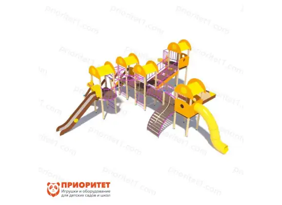 - Комплекс устанавливают в учебных и развивающих учреждениях, а также на уличных площадках. Рассчитан на большую группу детей.