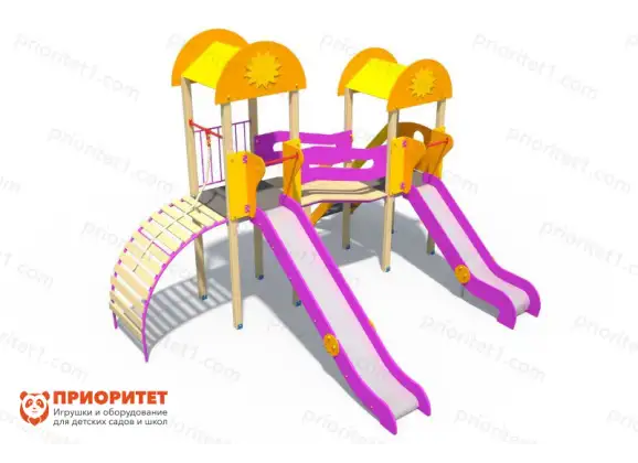 Игровой комплекс выполнен в тематике активных спортивных игр. Такая игровая зона быстро станет любимым местом среди детворы. Здесь дети смогут свободно бегать, играть, кататься, общаться и веселиться. Комплекс можно назначить местом встреч для друзей. Конструкция оснащена горкой с бортиками и скалодромом. Дополнительно имеется пространство для передвижения. Комплекс можно установить на придворных детских площадках, игровых зонах учебных заведений либо в частном секторе.