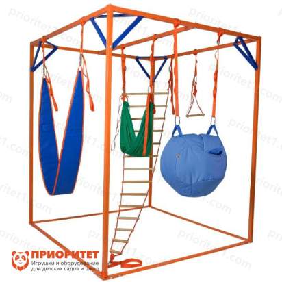 Домашний спортивный комплекс – спортивное оборудование для проведения физических занятий. Изготовлено в виде куба с надежными креплениями. Устойчивая металлическая конструкция оснащена различного рода снарядами, которые подойдут как для укрепления физического состояния здоровых детей, так и для развития, а также реабилитации детей с проблемами опорно-двигательного аппарата. Подойдет для оформления спортивных уголков в домашних условиях, спортивных садах или различных развивающих центрах.
