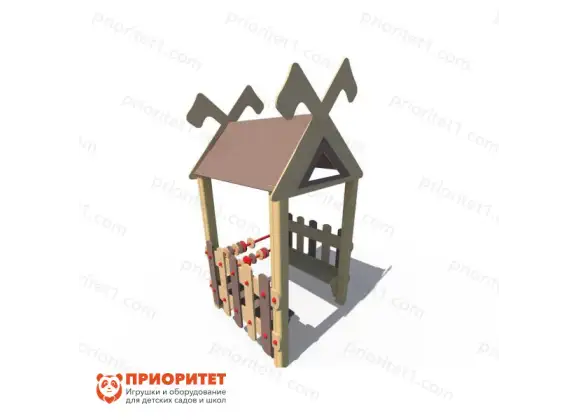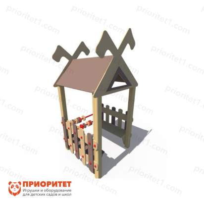 - С помощью домика удастся создать не только игровую, но и зону отдыха со скамьями и игрушками.