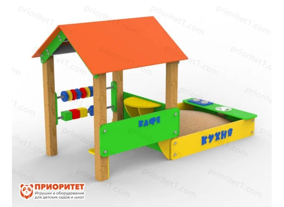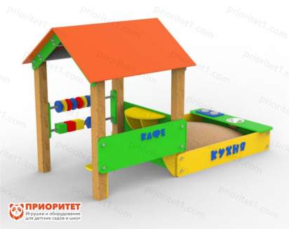Домик с песочницей «Кафе» не имеет острых углов и опасных элементов. Поэтому его можно устанавливать на площадке, где гуляют малыши. Цветовая гамма сдержанная и будет уместно смотреться на любой детской территории.