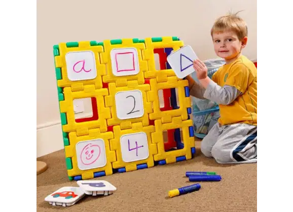 - Возможность использования деталей неограниченное количество раз. Достаточно приобрести стирающийся маркер, чтобы рисовать или писать на поверхности комплекта.