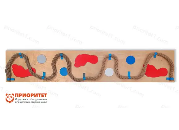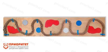 - Дорожка изготовлена из фанеры и каната, безопасна для малышей, не имеет острых деталей;