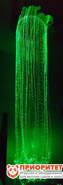 Фибероптический душ представляет собой безопасную подвесную конструкцию, которая образует завораживающую игру света и цвета – настоящий танец радуги, который привлекает внимание ребенка и способствует полной релаксации. От источника света безопасные фибероптические волокна проходят через небьющееся зеркало, проводя через себя свет. Их можно трогать и перебирать, получая необычные тактильные ощущения и развивая зрительные центры.